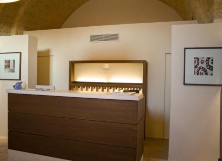 Le camere, che portano i nomi dei venti, Aliseo, Favonio, Levante, Tramontana... sono caratterizzate da un’eleganza sobria ed essenziale, con dettagli unici come le sedute in pietra davanti alle finestre che guardano il porto o le docce "matrimoniali" con lama d'acqua a cascata.