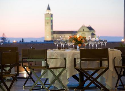 La terrazza regala una incantevole vista del porto e della cattedrale, regina delle chiese romaniche di Puglia e ospita il ristorante ( su prenotazione ) e il solarium in estate .