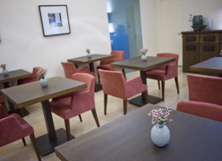 Davanti ad un panorama mozzafiato, si può scegliere se fare colazione, gustare un aperitivo rilassandosi sui comodi divani o cenare al ristorante.